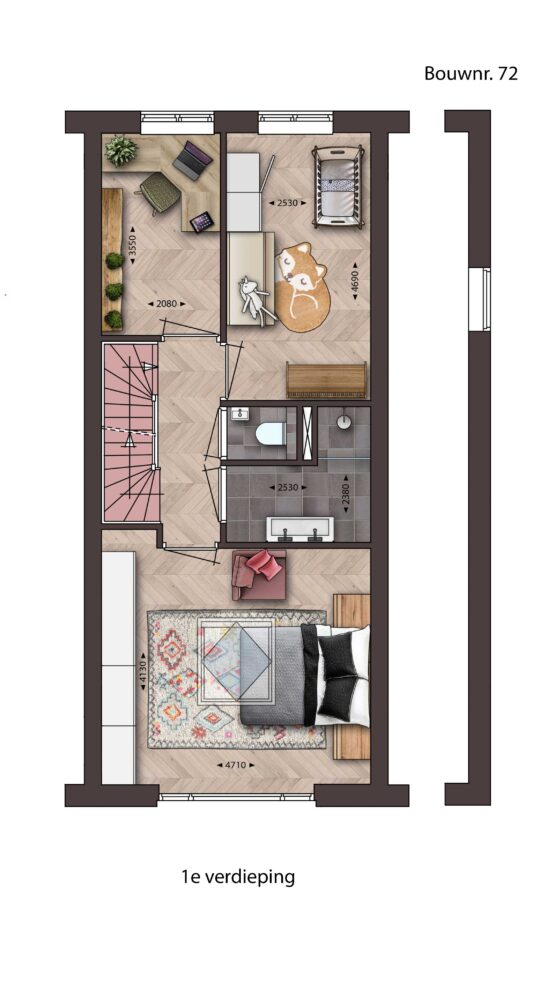 Deze woning groeit met jouw woonwensen mee. Ga voor een ruime woonkeuken met ensuite-deuren, creëer een thuiswerkplek of voeg slaapkamers samen voor een luxueuze inloopkast en een tweede badkamer. Alles is mogelijk!